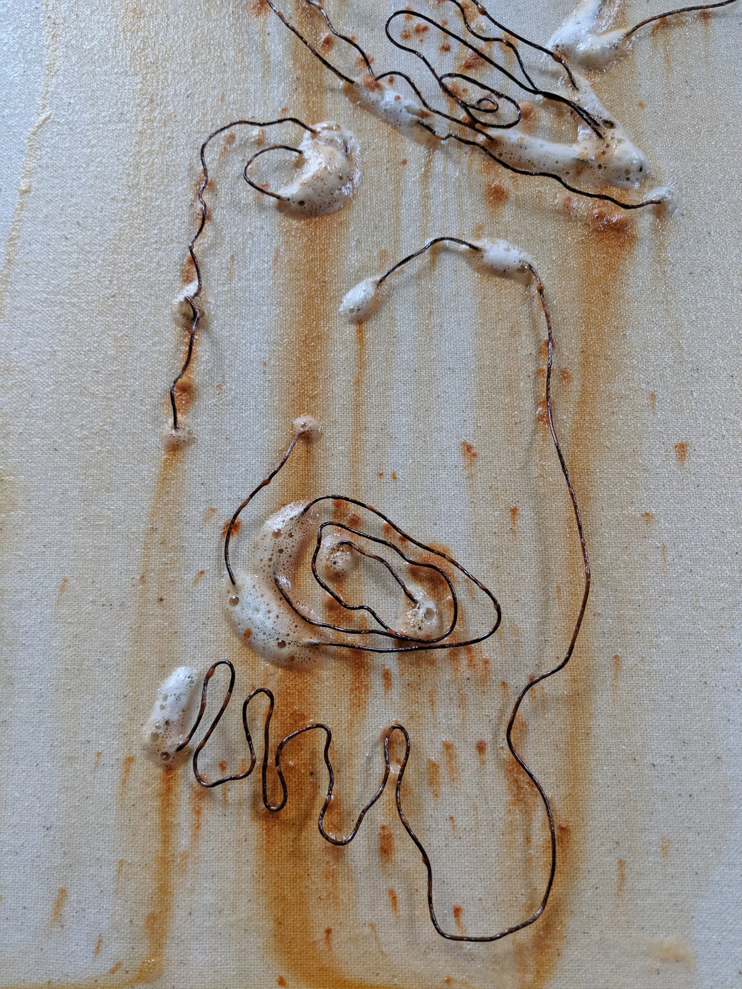 wire and oxidizing solution on canvas